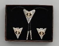Bolo Tie & Collar Tip Boxed Set - Interlocking Squares & Austrian Crystal