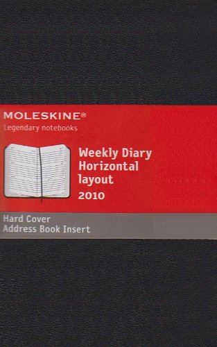The Moleskine 2010 Pocket Weekly Planner Horizontal is dated from January 2010 to December 2010. Formatted in a horizontal format to show each week on a two page spread (Monday, Tuesday, and Wednesday on the left page, Thursday, Friday and Saturday/Sunday on the right side), this popular planner style is perfect to have the week at a glance. The expandable inner pocket houses an address book of 28 lined pages with laminated alphabetical labels. You can remove and use it again in the years to come. Every Moleskine product is thread bound and has a cardboard bound cover with rounded corners, aci