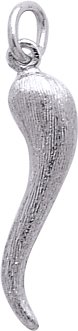 Please note that product images are enlarged to show detail. The actual item is 0.944 - (approx. 1 in.) inches long and 0.285 - (approx. 1/4 in.) inches wide. The Italian Horn Charm in rhodium-plated Silver is hand-polished with a High Polish finish. The charm shape is 3D - Solid Bottom; Hollow Top. Every Rembrandt charm comes with a heavy-duty jump ring that can be twisted open and easily attached by you. All Rembrandt Charms are guaranteed for life.