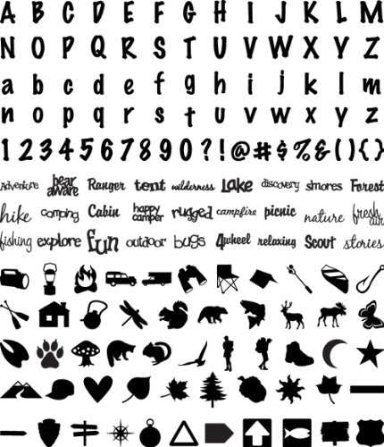 - Great Outdoors card features fun nature, camping, and outdoor shapes plus a full alphabet for over 100 different die-cuts